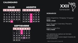 El programa se desarrollará a través de 7 sesiones grupales online, mentorías individuales (para versión full) y actividades de grupo cerrado de nuestra comunidad de aprendizaje.
